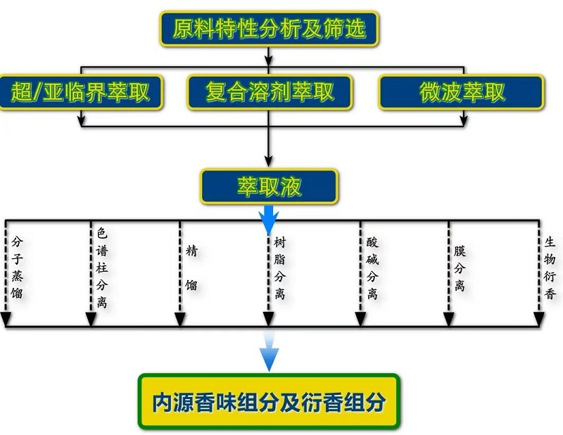 为了得到天然原料中的关键致香成分,我们联用并集成绿色萃取技术,包括: